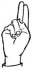 На ћирилици написано МОМИРКА ЕГАРИЋ састоји се из 13 слова [?]. Исписано ћириличном једноручном азбуком за глувонеме: